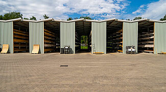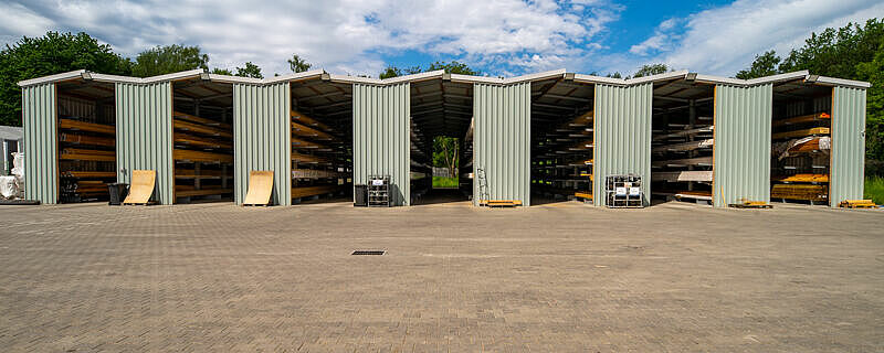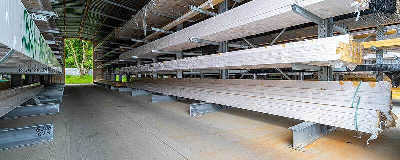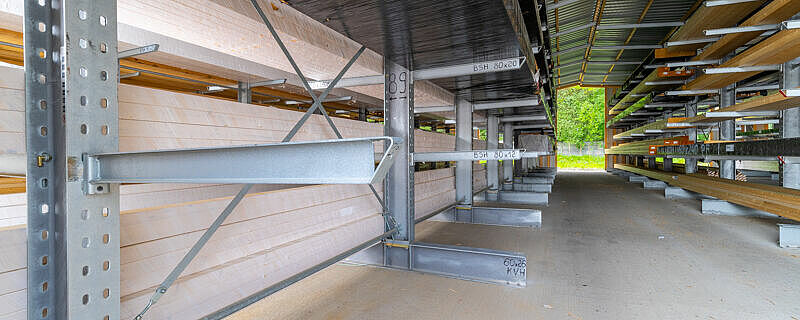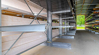 Abies Polska ha quindi deciso di sostituire lo stoccaggio a pavimento con scaffalature cantilever. Ohra ha fornito un totale di otto scaffalature, ciascuna dotata di sei livelli di carico. Il livello più alto si trova ad un'altezza di 5 metri – in modo che l'area di base esistente del magazzino esterno possa essere meglio utilizzata. I cantilever dispongono ciascuno di una mensola del tetto di 2,7 metri su entrambi i lati e sono disposti in modo tale che si sovrappongano. La protezione supplementare è fornita da un rivestimento delle pareti esterne, che è stato realizzato in lamiera di alta qualità basata sulle specifiche dell'autorità di costruzione. Le scaffalature formano così un capannone indipendente e di alta qualità.