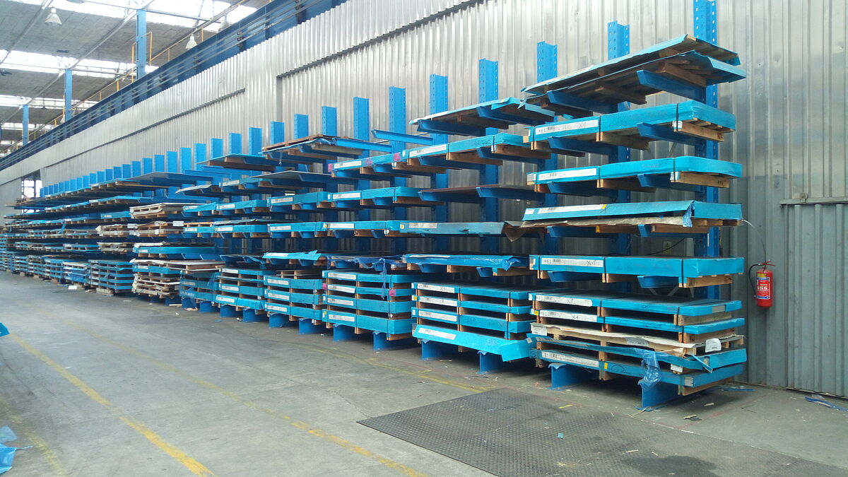 I cantilever OHRA permettono di stoccare le referenze separate tra loro. Le lamiere di lunghezza fino a 3 metri sono immagazzinate su pallet e i pacchi possono pesare fino a 2,5 tonnellate. Grazie ai cantilever, ogni singolo pacco può ora essere stoccato e prelevato senza dover movimentare altri pacchi di lamiere. La movimentazione risulta quindi essere notevolmente migliorata. Allo stesso tempo si limitano i danni avvenuti ripetutamente fino ad ora nel corso della movimentazione di pacchi ingombranti di lamiere.
