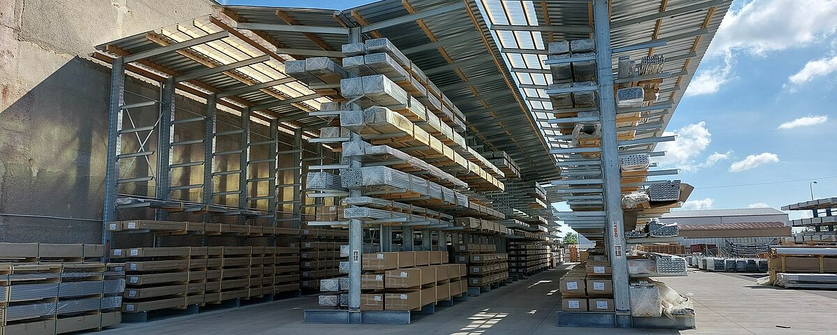 ALBIXON, uno dei principali produttori di piscine e coperture per piscine in Europa, ha migliorati la sua capacità di stoccaggio con cantilever con tetto di Ohra in cui sono stoccati i profili di alluminio pallettizzati; la lunghezza dei pallet è da 5 a 12 metri, il peso varia da 500 a 1.200 kg. La nuova scaffalatura non solo permette di soddisfare le esigenze produttive ma aumenta anche l'efficienza complessiva del magazzino.