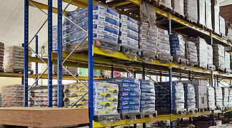 Le nuove scaffalature OHRA per carichi pesanti consentono a Budmax, uno dei maggiori commercianti di materiali da costruzione e ristrutturazione della Bulgaria, uno stoccaggio efficiente delle merci contenute in sacchi. Prima le merci venivano collocate su pallet e poggiate a terra. Con un carico per livello di 5000 kg e un’altezza delle spalle di 4580 mm, Budmax può ora stoccare su quattro livelli pallet fino a 1200 kg di peso. Ciò consente un migliore utilizzo delle superfici e un accesso più agevole e rapido agli articoli.