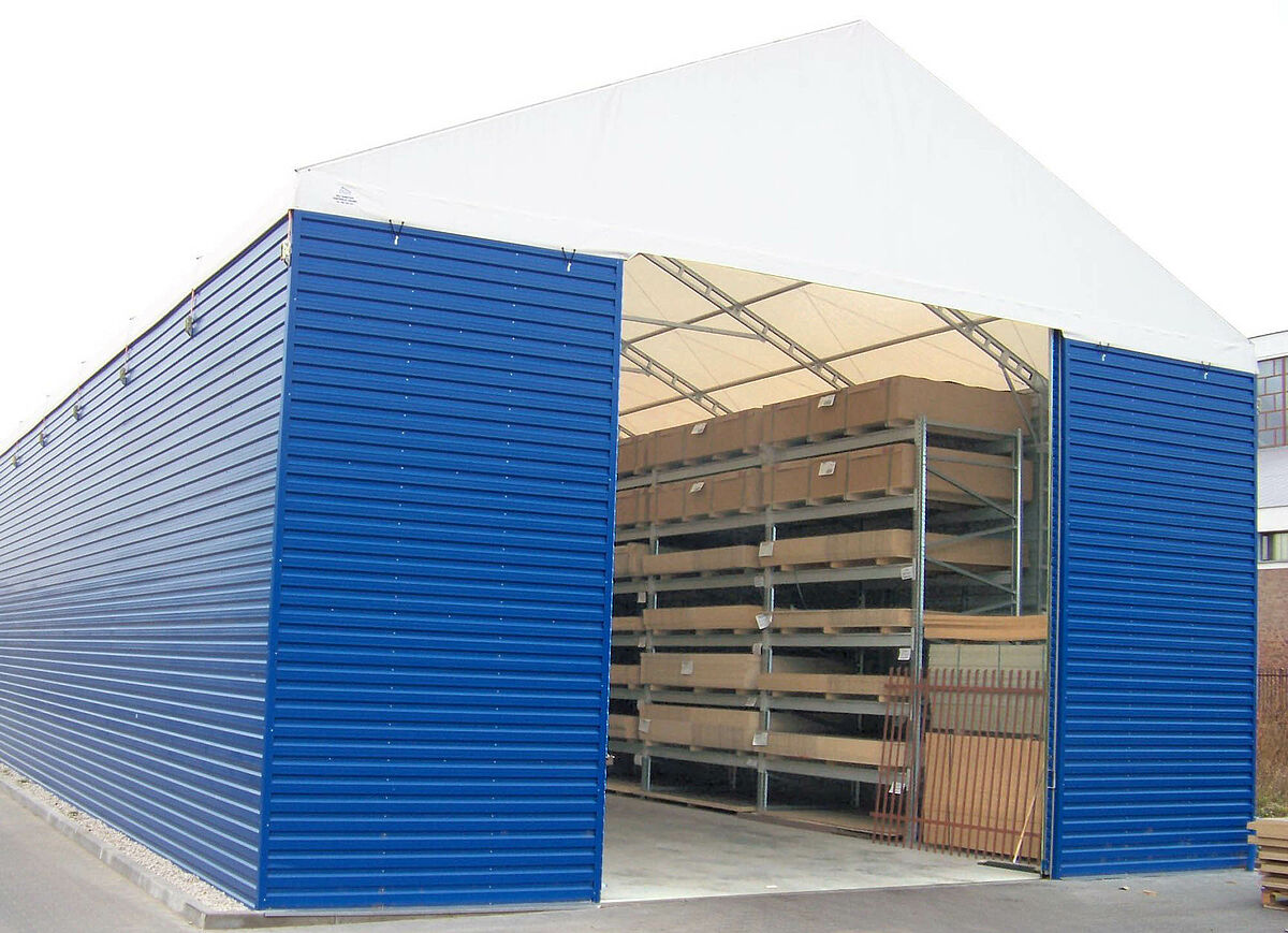 I primi investimenti nelle scaffalature OHRA Damar li fece già sei anni fa. Convinta della qualità di questi prodotti, l'azienda ora ha attrezzato anche il più recente magazzino con scaffalature portapallet dello specialista di Kerpen. Qui vengono immagazzinati pannelli di 2070x2800 mm in pacchi che possono anche raggiungere il peso di 1800 chilogrammi. Con una particolarità: il magazzino è stato allestito in un tendone. Qui ha dato prova di sé la grande flessibilità delle soluzioni di OHRA, poiché al fine di sfruttare al meglio lo spazio disponibile, la distanza dei montanti è stata adattata esattamente alla struttura dell'intelaiatura del tendone. A tal fine OHRA ha modificato la lunghezza delle travi longitudinali portandola a 2950 mm, così i montanti dello scaffale portapallet vengono a trovarsi esattamente davanti ai puntelli della copertura del tendone - consentendo così di sfruttare al meglio lo spazio a disposizione.