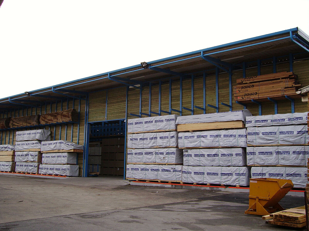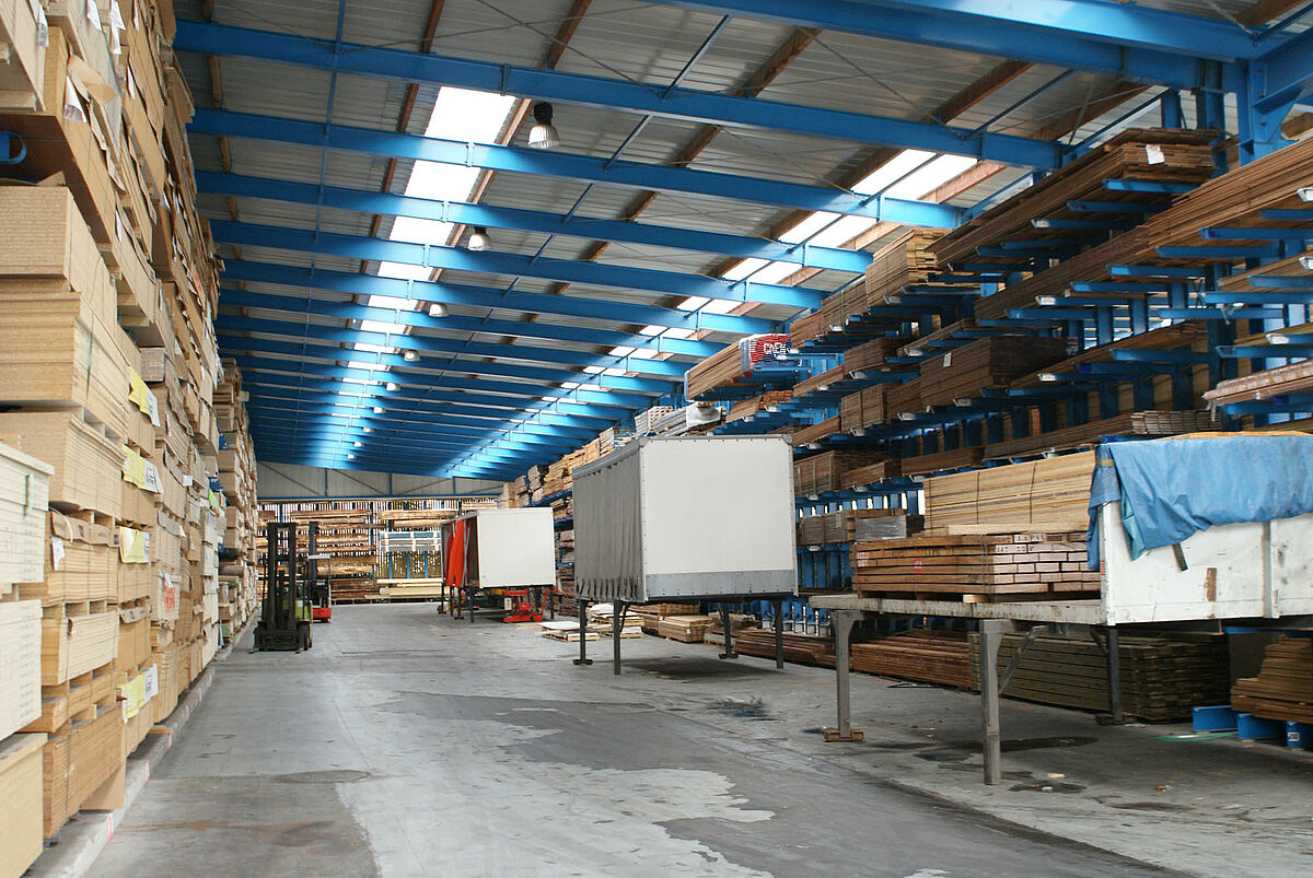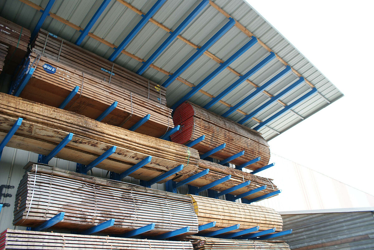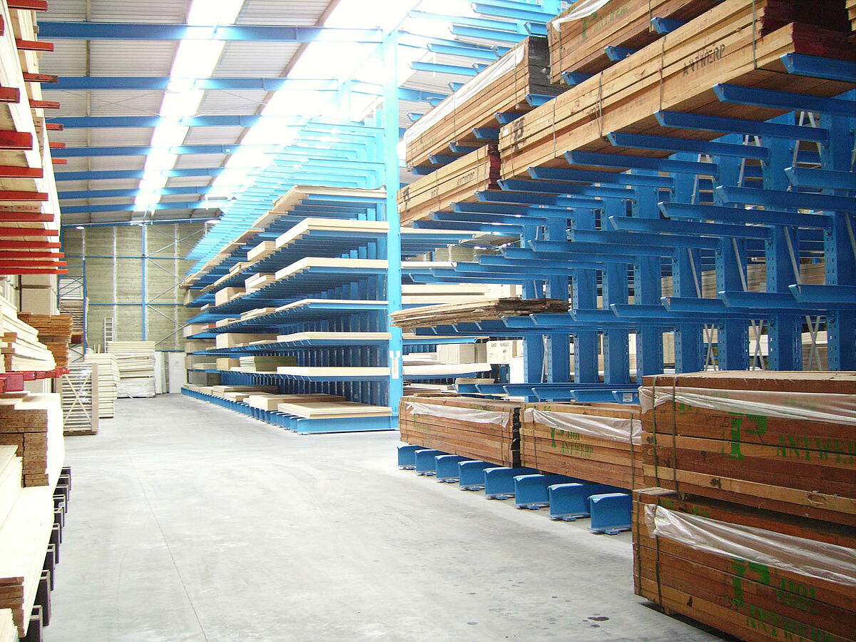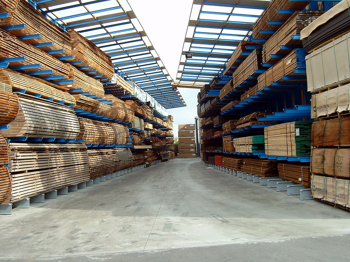 Per la soluzione di questi problemi di magazzino il cliente ora poteva scegliere tra una struttura tradizionale o la struttura a scaffali di OHRA. Considerando le problematiche descritte, Decamps ha optato per la soluzione di OHRA. Con questa variante è stata realizzata la tettoia e al tempo stesso sono state potenziate le capacità di stoccaggio. Grazie all'impiego di robusti bracci, anche la parte esterna del capannone con tettoia è stata utilizzata come magazzino per i prodotti che richiedono poca o nessuna protezione dagli agenti atmosferici. Sino a quel momento tali prodotti erano immagazzinati in un altro edificio.