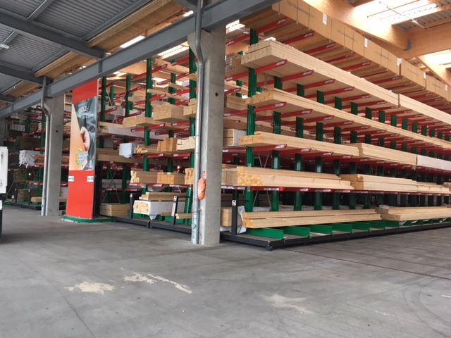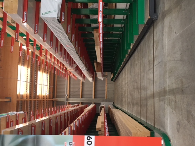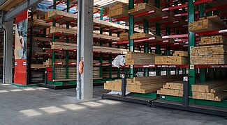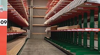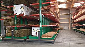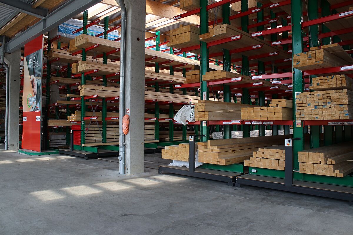 Nel magazzino, i materiali edili sono raccolti secondo gli ordini di artigiani e costruttori privati. Tra gli articoli stoccati ci sono vari materiali edili, legni lunghi fino a 13 metri e varie merci insaccate. Al fine di offrire ai clienti il più ampio portafoglio possibile di merci, l'obiettivo principale della modernizzazione è stato un aumento della capacità di stoccaggio - fino ad ora, gli articoli erano stoccati esclusivamente in scaffalature a più cantilever.