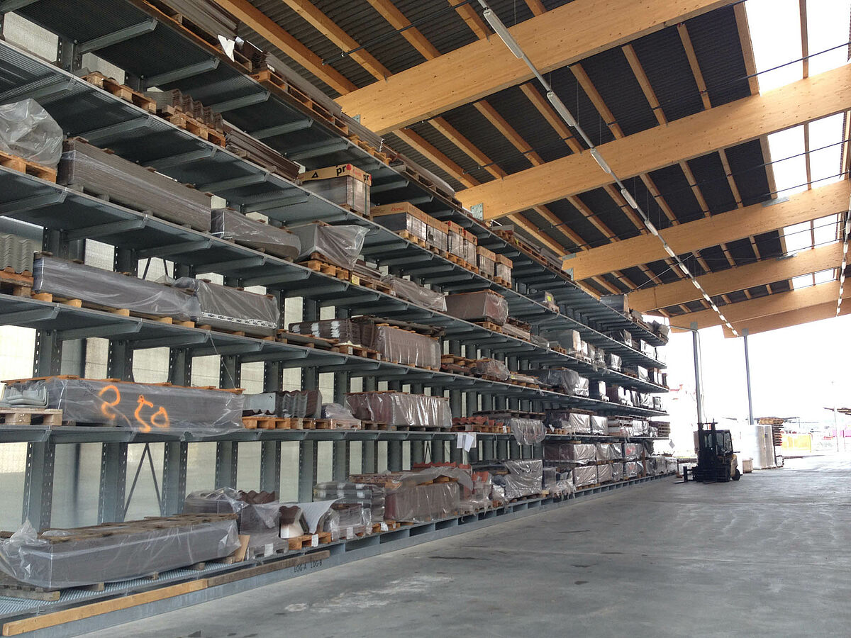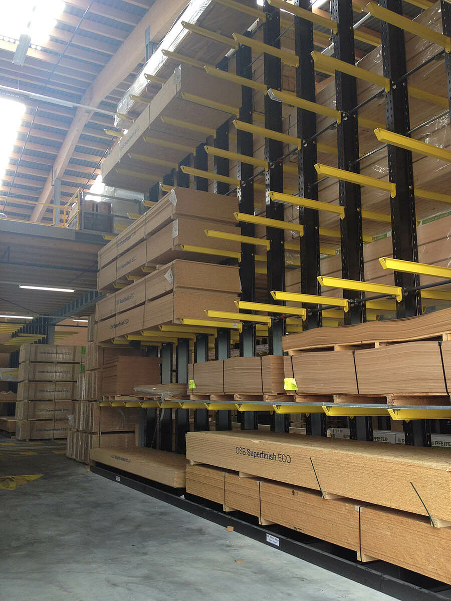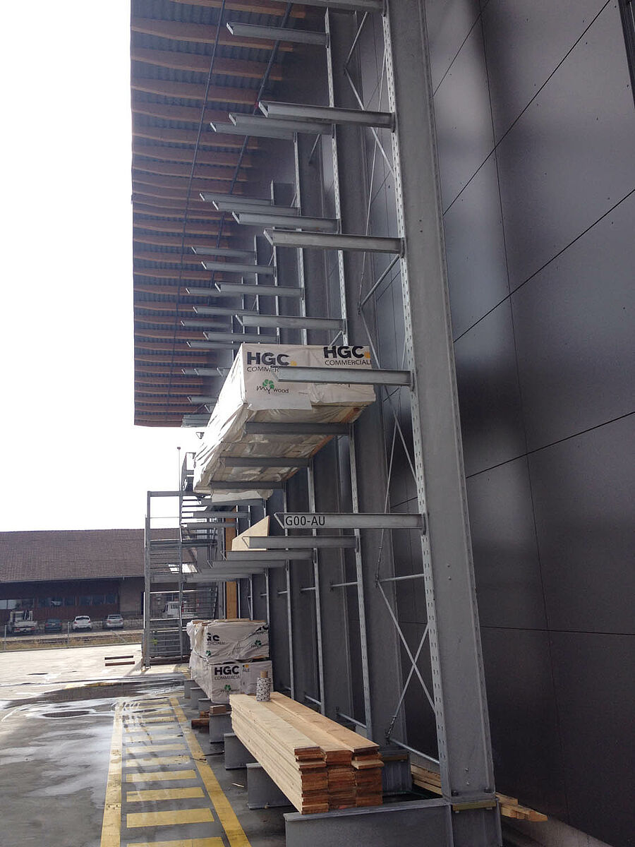 Il magazzino di Biel, che occupa una superficie di circa 3000 metri quadrati, è suddiviso in due zone drive-through. Nel capannone OHRA ha installato circa 600 metri lineari di scaffalature cantilever per un'altezza di 9 metri, sette livelli di stoccaggio e bracci orizzontali profondi, per la maggior parte, 2,5 metri e serviti da carrelli elevatori a quattro vie. Scaffalature verticali all'estremità delle file dei ripiani consentono inoltre l'immagazzinamento ordinato e di facile orientamento di listelli, profilati e tubi. Le scaffalature portapallet e cantilever in versione zincata a caldo installate negli spazi esterni sono in grado di alloggiare altri 600 pallet. Per l'immagazzinamento dei materiali isolanti è stata integrata una piattaforma di 1000 metri quadrati nella costruzione del capannone.