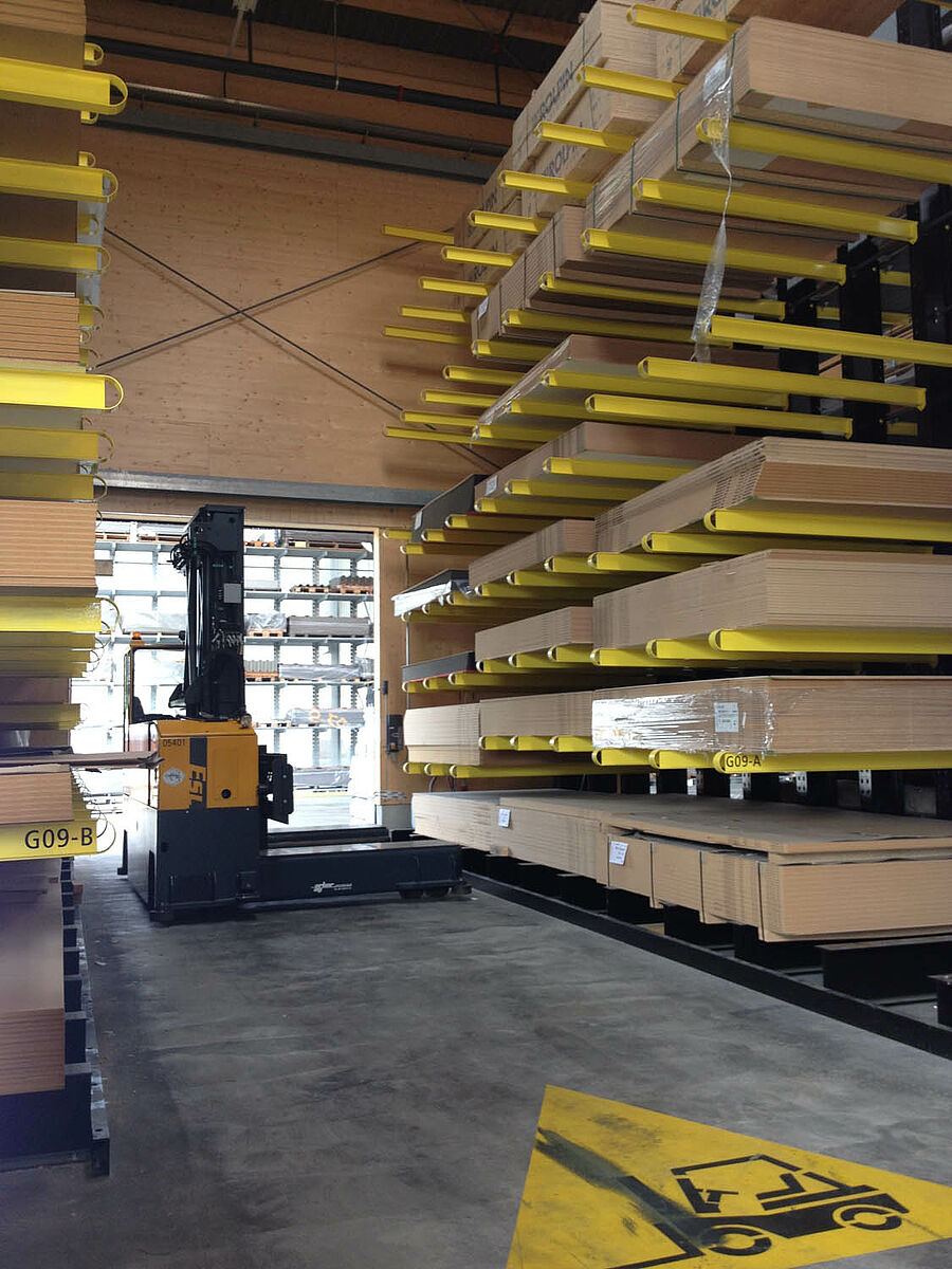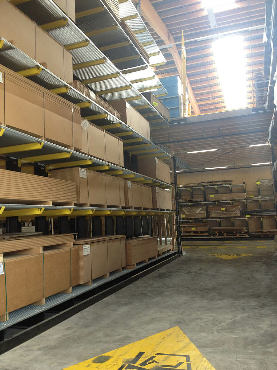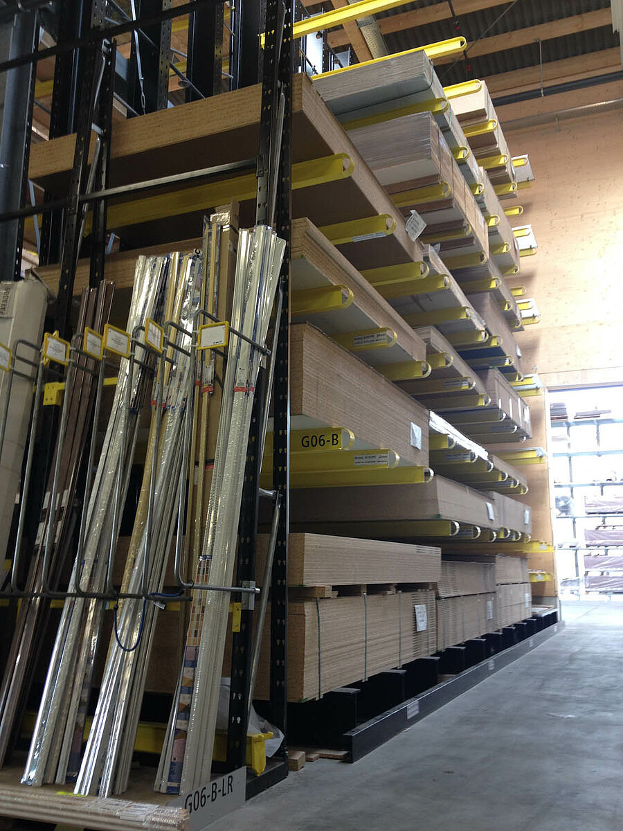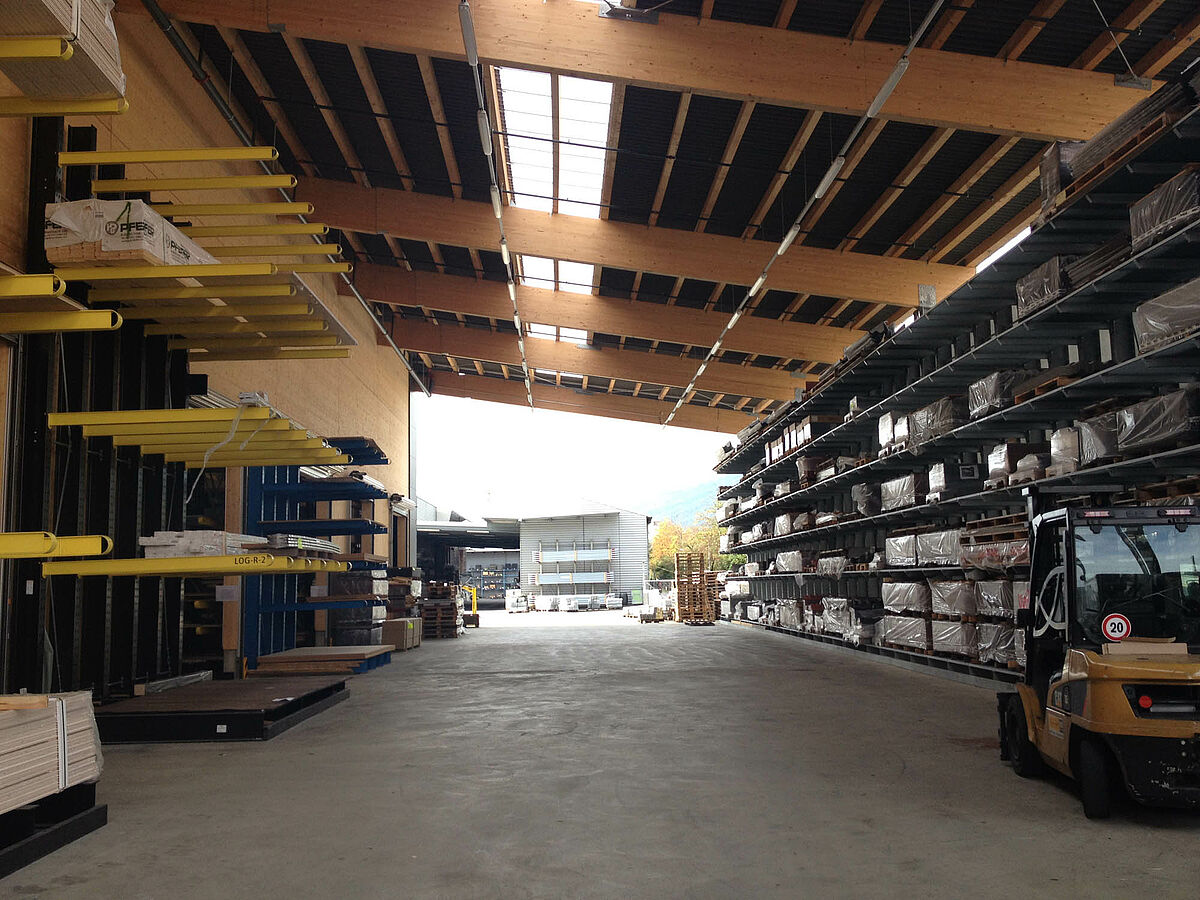 Il magazzino di Biel, che occupa una superficie di circa 3000 metri quadrati, è suddiviso in due zone drive-through. Nel capannone OHRA ha installato circa 600 metri lineari di scaffalature cantilever per un'altezza di 9 metri, sette livelli di stoccaggio e bracci orizzontali profondi, per la maggior parte, 2,5 metri e serviti da carrelli elevatori a quattro vie. Scaffalature verticali all'estremità delle file dei ripiani consentono inoltre l'immagazzinamento ordinato e di facile orientamento di listelli, profilati e tubi. Le scaffalature portapallet e cantilever in versione zincata a caldo installate negli spazi esterni sono in grado di alloggiare altri 600 pallet. Per l'immagazzinamento dei materiali isolanti è stata integrata una piattaforma di 1000 metri quadrati nella costruzione del capannone.