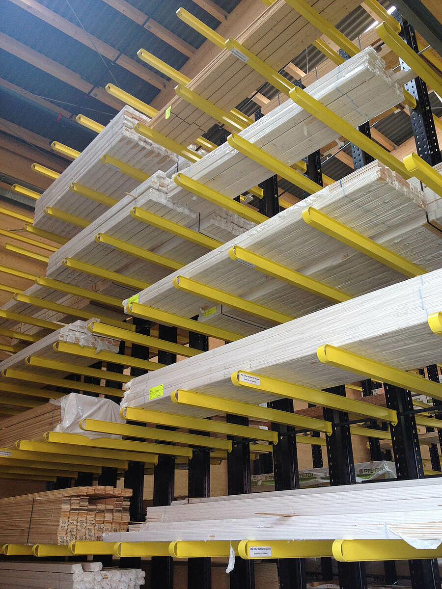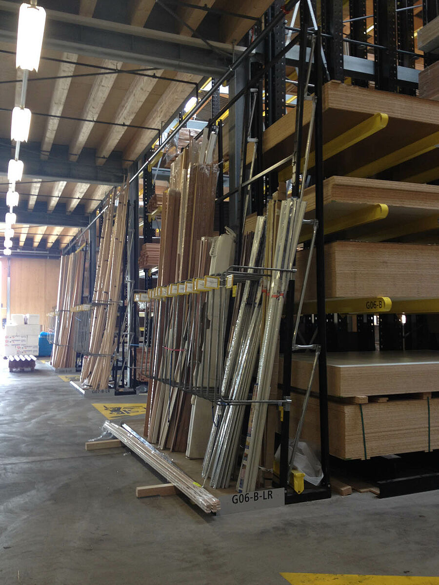 La HG COMMERCIALE (HGC), una delle imprese commerciali leader in Svizzera nel settore edilizio, ha ampliato il proprio punto di vendita di Biel attrezzandolo con sistemi di scaffalature OHRA. Qui una combinazione studiata su misura di scaffalature cantilever, portapallet e verticali è in grado di alloggiare un'ampia gamma di materiali da costruzione. Il deposito coperto è stato realizzato come magazzino drive-through: i clienti attraversano il magazzino percorrendolo in un'unica direzione e ricevono la merce direttamente dai diversi scaffali.