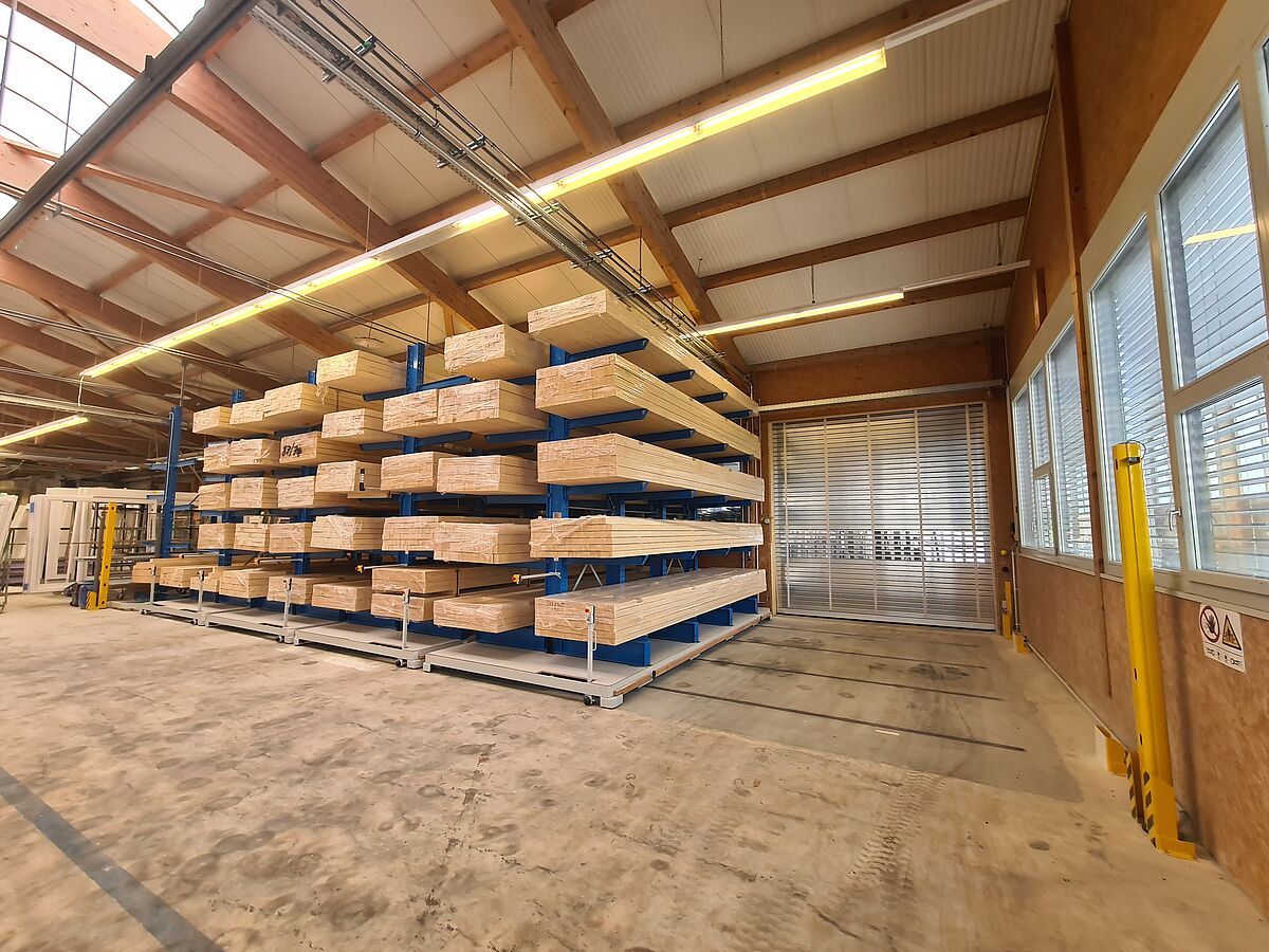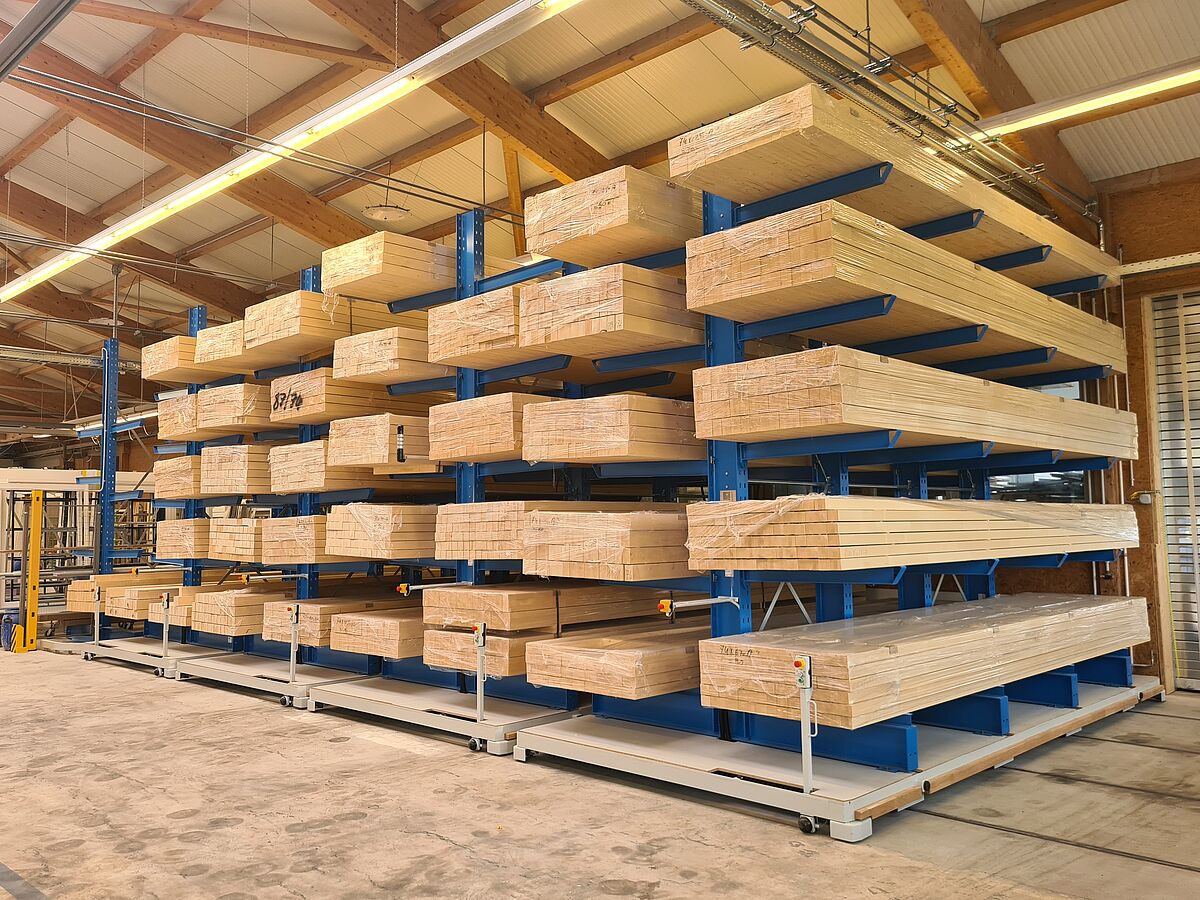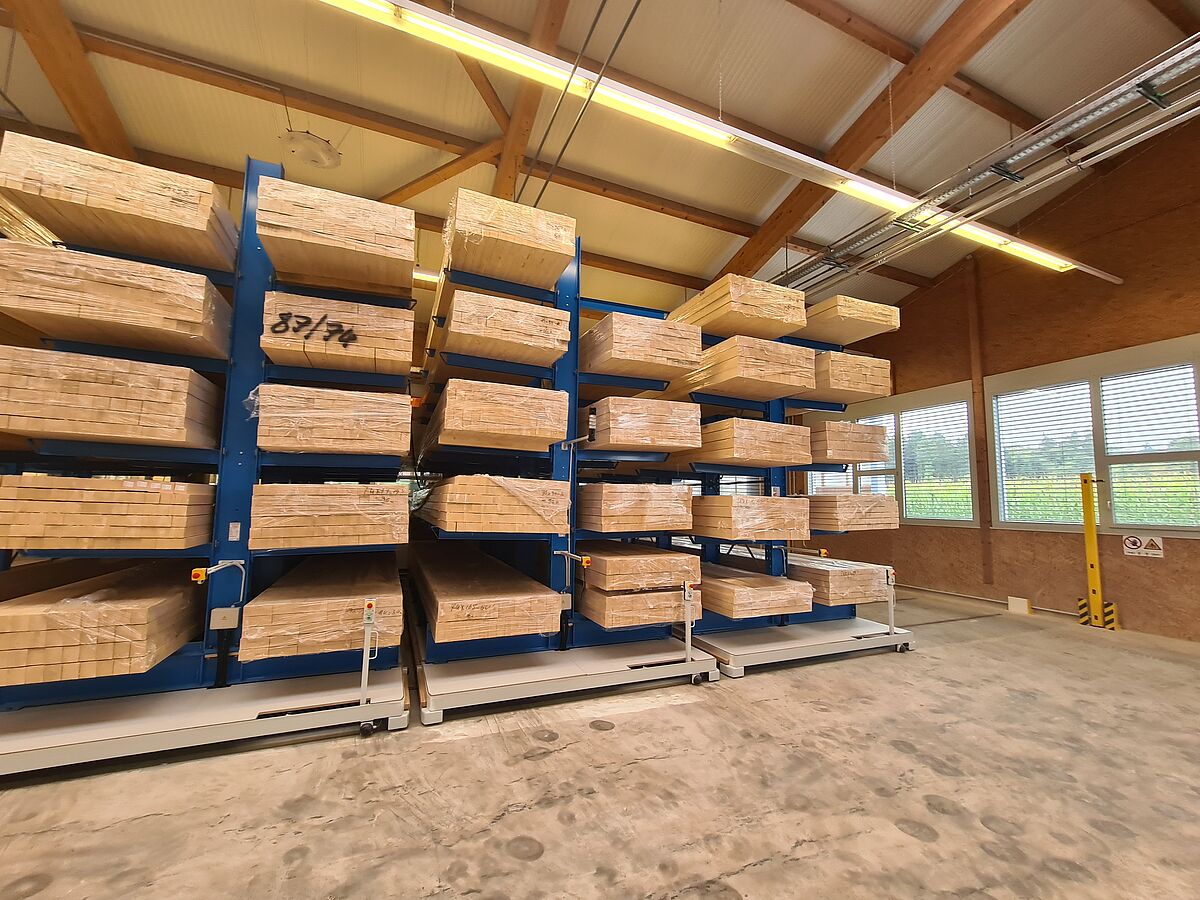 Stocker realizza serramenti in legno e legno-metallo per tutti i tipi di edifici. Grazie a una produzione all'avanguardia, l’azienda è in grado di soddisfare in modo rapido e flessibile le esigenze dei clienti. L’ampliamento per il taglio del legno richiedeva attualmente una capacità significativamente superiore dei travetti in legno lunghi sei metri, importanti in quanto materiale di partenza per la realizzazione delle finestre. Tuttavia, occorreva occupare il minor spazio possibile nel capannone esistente. Per tale ragione Stocker ha quindi installato un sistema di scaffalature mobili OHRA: tale sistema è costituito da una scaffalatura cantilever fissa e da quattro bifronti, montate su basi mobili. Le basi costituiscono un blocco di stoccaggio compatto, con una sola corsia aperta adatta al passaggio di un muletto multidirezionale. Le quattro scaffalature su basi mobili sono lunghe 6,4 metri e offrono un'altezza massima di stoccaggio di cinque metri su cinque livelli. Ogni telaio può essere caricato con oltre 39 tonnellate.