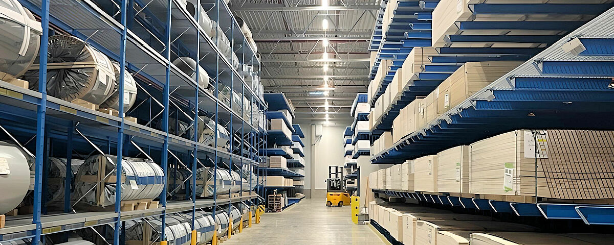 A causa degli articoli stoccati (legno, colle, plastica), il magazzino è classificato in una classe di protezione antincendio molto elevata. Di conseguenza, le scaffalature dovevano essere dotate di sistemi sprinkler. OHRA ha offerto una soluzione flessibile soprattutto per le scaffalature cantilever: sono stati praticati due fori da 80 millimetri in ciascuna delle barre dei montanti per far passare i tubi dell'impianto antincendio. Questa soluzione si è rivelata particolarmente poco ingombrante, e i cavi sono inoltre ben protetti da eventuali danni.