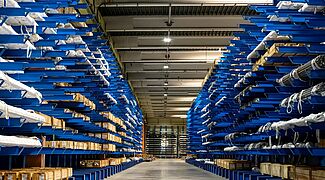 In questo modo sono state poste le condizioni quadro per la struttura a scaffalature cantilever: livello di stoccaggio superiore a 5,25 metri, dieci livelli di stoccaggio, carico scompartimento 4 tonnellate, carico ripiano 40 tonnellate. “Solo pochi produttori di scaffalature offrono scaffali standard per carichi così elevati”, afferma Wiedmann. OHRA, invece, è stata in grado di offrire un progetto adeguato. Utilizzando profili in acciaio ad anima piena per tutti gli elementi portanti, le scaffalature cantilever dell’azienda di Kerpen hanno una capacità portante enorme. “Per noi era importante, spiega inoltre Wiedmann. “Così possiamo adattare in modo precisissimo le altezze di compartimento all’effettiva altezza dei fasci. In questo modo, ottimizziamo le altezze e possiamo minimizzare le altezze di alzata necessarie: ogni centimetro risparmiato riduce i tempi della movimentazione”.