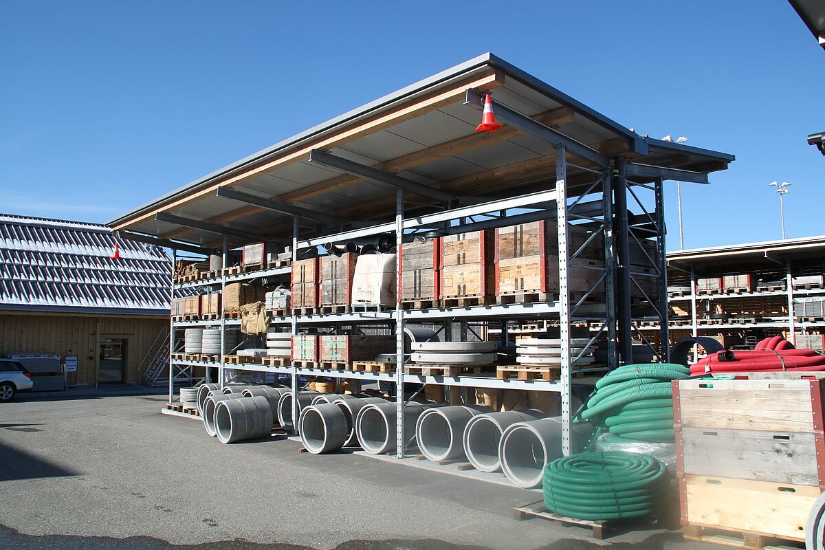 Le scaffalature per pallet e cantilever installate nell’area esterna sono dotate di un tetto per proteggere la i materiali; a tale scopo OHRA ha dotato le travi di bracci corrispondenti posti sul tetto e la copertura è stata realizzata da un’impresa edile locale. OHRA ha progettato la scaffalatura per sostenere elevati carichi di neve fino a 484 chilogrammi per metro quadrato e i carichi del vento fino a 110 chilogrammi per metro quadrato a cui Appenzell spesso è soggetta.