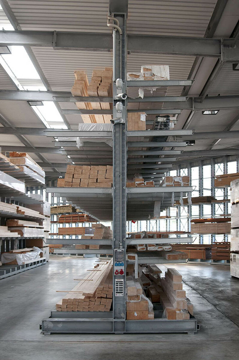 Fin dall'inizio la Schyns ha puntato sulle scaffalature cantilever di OHRA: per la scelta si è rivelato determinante, da un lato, il sistema, con la sua robustezza. Tutti gli elementi portanti sono infatti realizzati in acciaio laminato a caldo a parete piena. I profili così, in caso d'urto, possono cedere elasticamente e preservare le proprie qualità statiche anche alle condizioni operative più aspre in modo duraturo. Inoltre la costruzione stabile dell'impianto consente di raggiungere altezze di stoccaggio considerevoli. Alla Schyns infatti il livello di immagazzinamento più alto è situato ad un'altezza di 6 metri. D'altro canto le scaffalature cantilever di OHRA non sono avvitate né saldate ai montanti, bensì semplicemente agganciate. In caso d'urto da parte di muletti o merce, è così garantita l'integrità sia del braccio che degli articoli stoccati. I montanti delle scaffalature sono forati con un passo di 100 mm che consente di agganciare i bracci in modo flessibile. I bracci si possono regolare senza attrezzi e così le scaffalature possono essere rapidamente adattate al mutare delle condizioni di immagazzinamento.