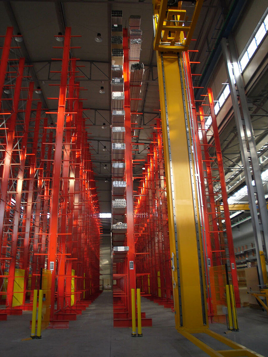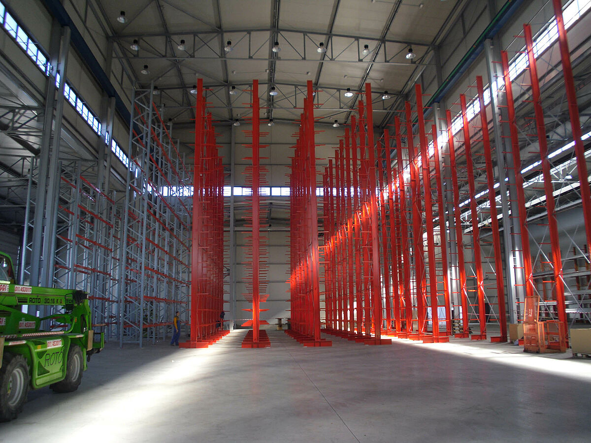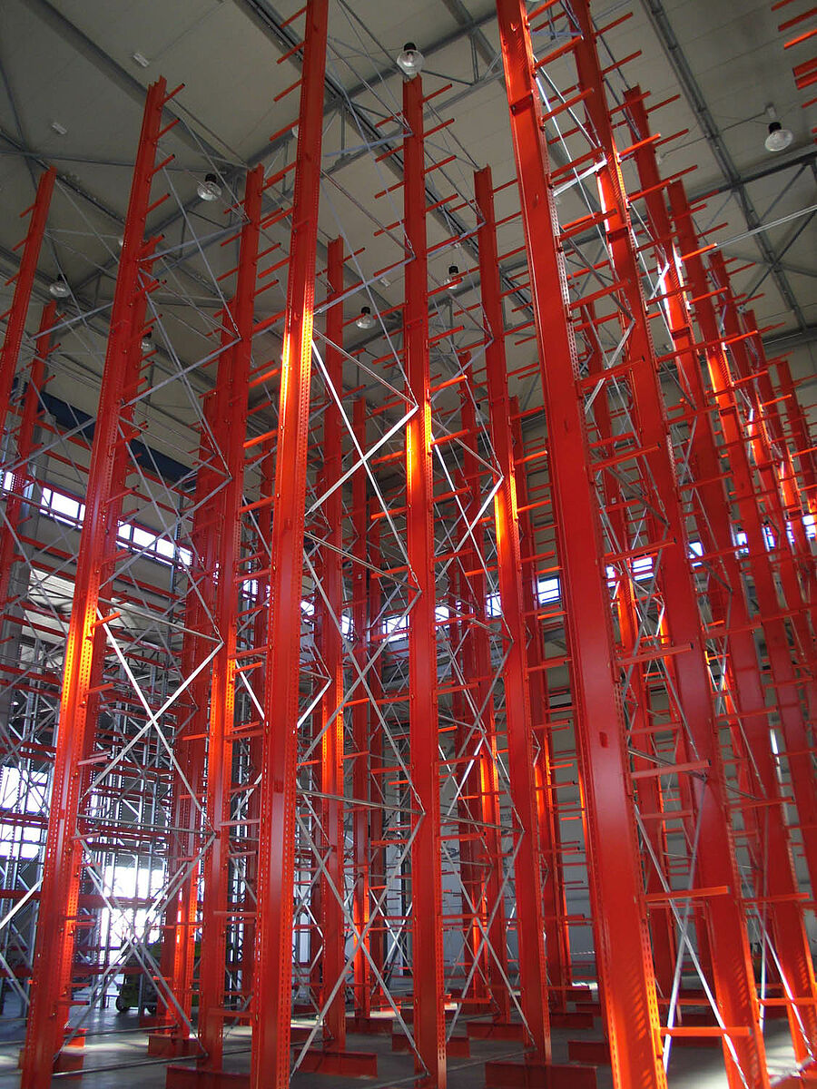 Della fornitura dei sistemi di scaffalature necessari alla realizzazione del progetto è stata incaricata la OHRA Regalanlagen GmbH - azienda tedesca di Kerpen, leader sul mercato europeo e specialista nelle scaffalature cantilever. Una volta ottimizzate le procedure logistiche e scelto un impianto gru completamente automatizzato da parte di Sistema, gli esperti di OHRA hanno ottimizzato il magazzino a scaffalature cantilever al fine di ottenere il massimo della capacità di stoccaggio.