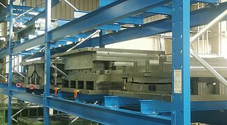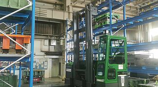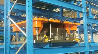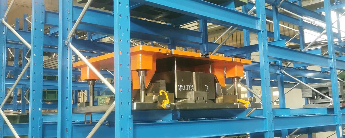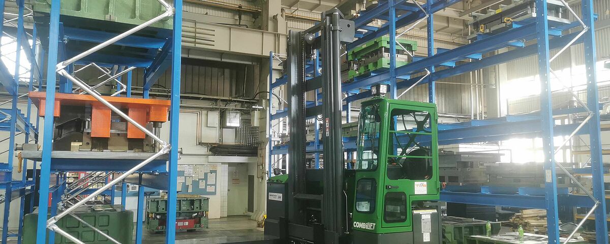 Rispetto allo stoccaggio alternativo a terra, con le nuove scaffalature Solvaro è in grado di immagazzinare un numero considerevolmente maggiore di stampi per imbutitura sulla superficie disponibile. Ma l’aspetto ancora più importante è il rapido accesso diretto ad ogni stampo: un carrello speciale a forche Combilift, acquistato appositamente per gli stampi per imbutitura, può agevolmente sollevare i pesanti stampi dallo scaffale e trasportarli direttamente alla pressa da imbutitura. Allo stesso tempo, gli stampi per imbutitura sono sempre al riparo da danneggiamenti grazie alla struttura delle scaffalature fatte su misura.