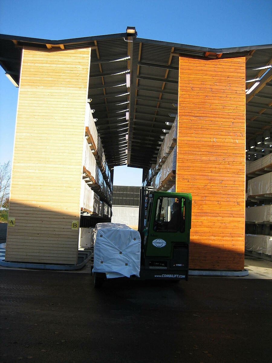 Tra le varie soluzioni proposte, la ditta Superwood ha scelto un impianto con scaffali con bracci a sbalzo zincati a caldo della ditta OHRA. Gli elementi per il tetto sovrapposti in combinazione con un corridoio ridotto per l’impiego di un impilatore laterale sono stati per il cliente argomenti convincenti. La progettazione è avvenuta insieme al partner commerciale danese presso il cliente sul posto. In tale occasione sono stati discussi alcuni punti fondamentali quali la bontà e lo spessore del calcestruzzo per le fondamento e la forma della copertura. Analogamente è stato preso in considerazione il parere del rivenditore di impilatori locali.