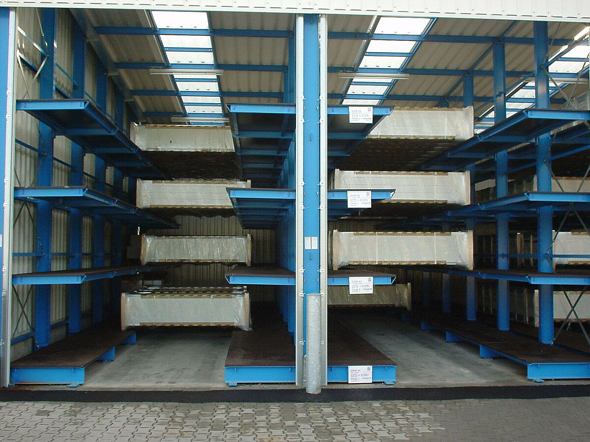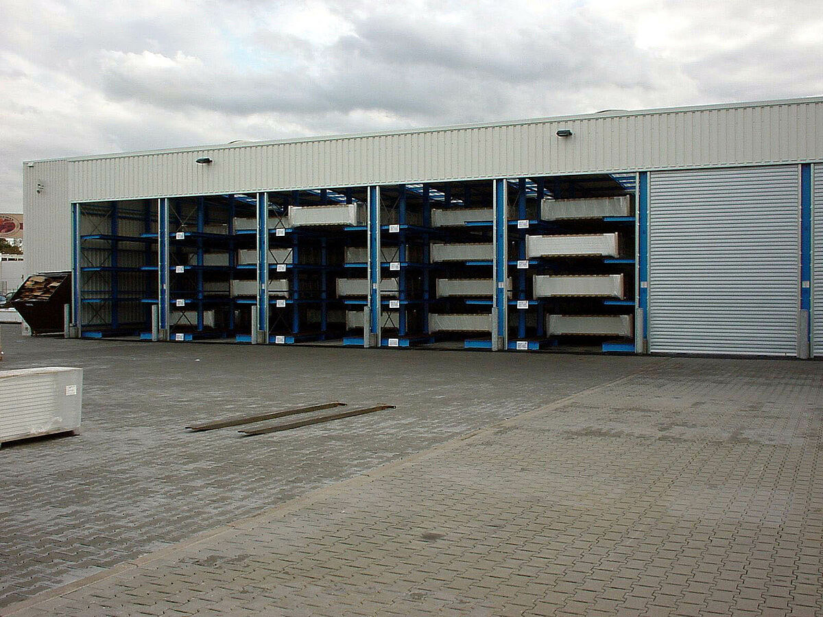 A causa dell’enorme successo di vendita si era reso necessario un ampliamento del magazzino per i prodotti finiti; contemporaneamente bisognava però fare i conti con le esigenze particolari dello stoccaggio di piccole serie di prodotti. A seguito di un lungo lavoro di progettazione è stato creato un nuovo tipo di impianto a drive-in su cantilever che permette di stoccare cancelli larghi da 4,2 m a 6,5 m.