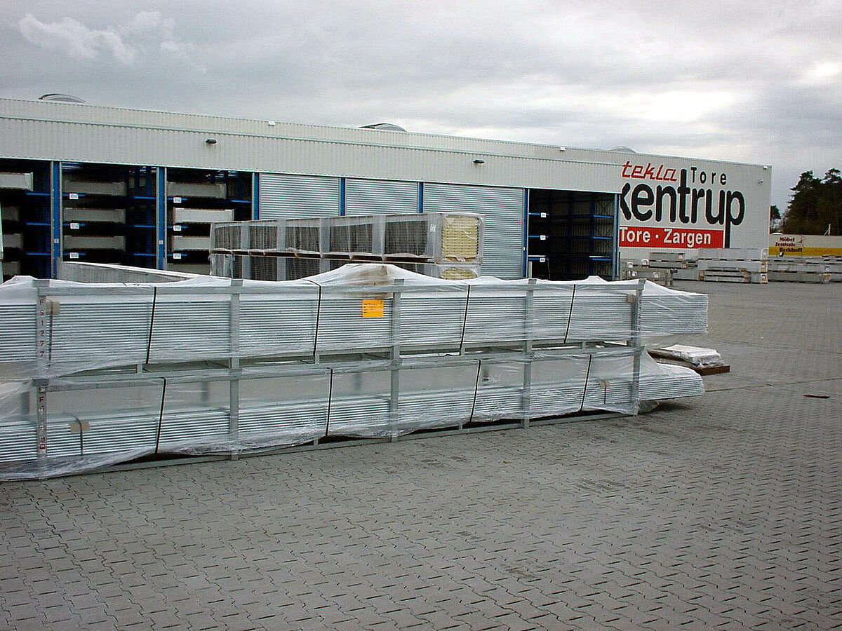 La ditta TEKLA realizza principalmente portoni e cancelli su ordinazione o a piccoli lotti in diverse zone della Germania. A Verl. le porte sezionali e basculanti escono dalla modernissima fabbrica per essere disposte sugli scaffali OHRA e ivi approntate per la spedizione.