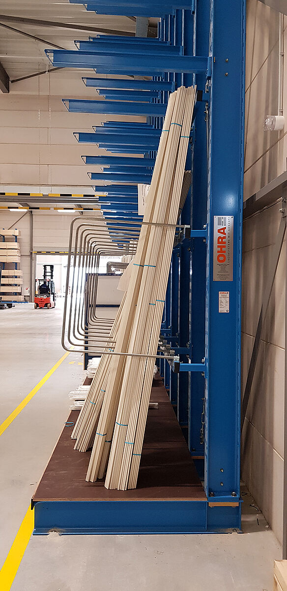 I sistemi di scaffalature OHRA hanno già dato prova del loro valore nella sede di Gouderak, cosicché anche la nuova sede è stata allestita con i sistemi di stoccaggio del leader di mercato in Europa per le scaffalature cantilever. Anche la flessibilità degli scaffali ha favorito la loro applicazione: gli scaffali a griglia nelle scaffalature cantilever consentono lo stoccaggio continuo di diversi formati di pallet e merci senza ingombranti supporti intermedi. In questo modo si evitano anche danni alla merce durante lo stoccaggio e il prelievo. Tutti gli elementi portanti delle scaffalature sono costituiti da solidi profili in acciaio, grazie a questa stabile struttura uno scaffale portapallet con una larghezza di 4.200 mm può sopportare un carico di 7.377 Kg.