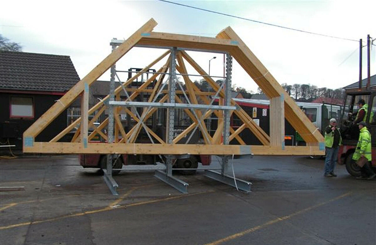 La Walker Timber Ltd., specializzata nella produzione di capriate e costruzioni in legno, con sede a Bo'ness, vicino ad Edimburgo (Scozia), necessita di un sistema di immagazzinaggio per nuove costruzioni di capriate. Esse dovrebbero essere immagazzinate su terreni esterni fino al carico su camion in modo sicuro e tale da facilitarne il prelievo.