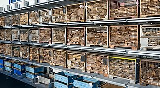 Una sfida è stata rappresentata dal materiale di stoccaggio disomogeneo: gli articoli con pesi, lunghezze e altezze differenti e in diversi ausili per lo stoccaggio (scatole, pallet, rastrelliere con quattro piedini angolari) devono trovare spazio nei nuovi scaffali. "In pratica, per noi era importante immagazzinare tutte le merci in un unico sistema di stoccaggio", afferma Fabian Bechtold, amministratore delegato di LEUBE. Per renderlo possibile, tutti i livelli di stoccaggio delle scaffalature cantilever sono stati dotati di ripiani a griglia. In questo modo gli articoli possono essere immagazzinati pezzo per pezzo in modo flessibile e senza interruzioni.