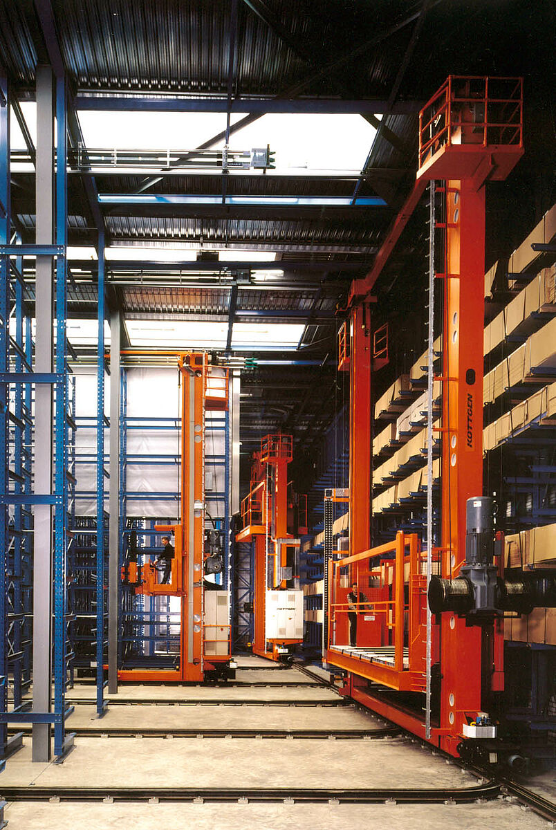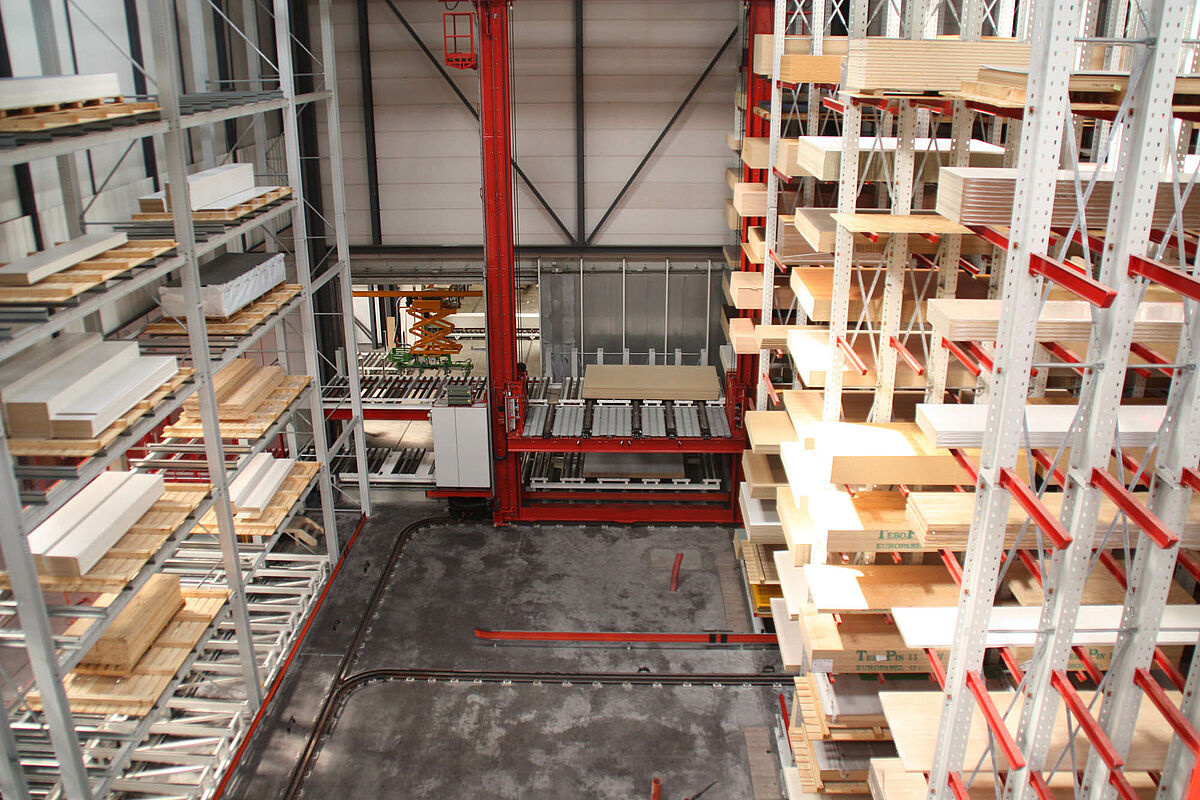 Ottimizzazione della movimentazione tramite automazione parziale o totale dei processi di stoccaggio e prelievo. In base al principio “le merci vanno all'uomo”, aumenta la capacità di stoccaggio in relazione alle elevate capacità di prelievo. A seconda delle esigenze, pacchetti completi o singoli pannelli possono essere rimossi e trasportati alla stazione di arrivo.