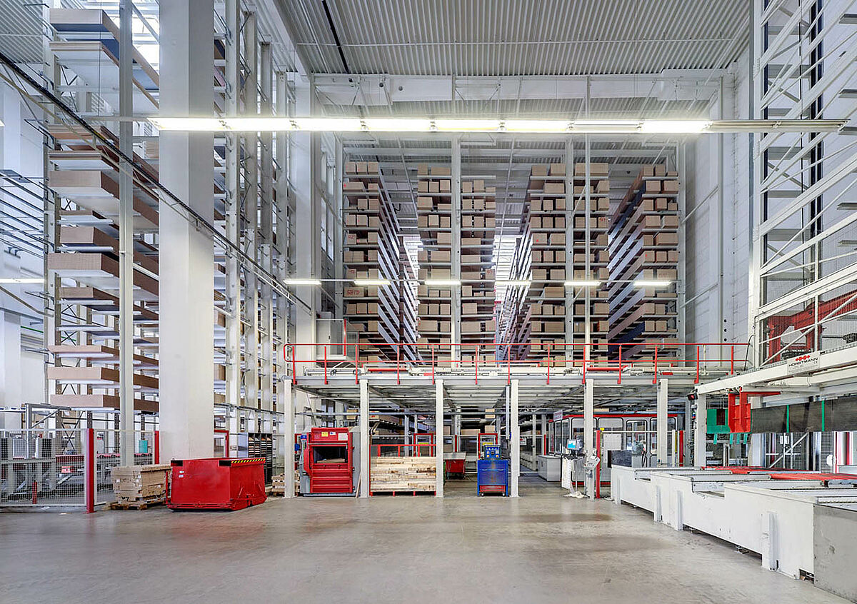 Ottimizzazione della movimentazione tramite automazione parziale o totale dei processi di stoccaggio e prelievo. In base al principio “le merci vanno all'uomo”, aumenta la capacità di stoccaggio in relazione alle elevate capacità di prelievo. A seconda delle esigenze, pacchetti completi o singoli pannelli possono essere rimossi e trasportati alla stazione di arrivo.
