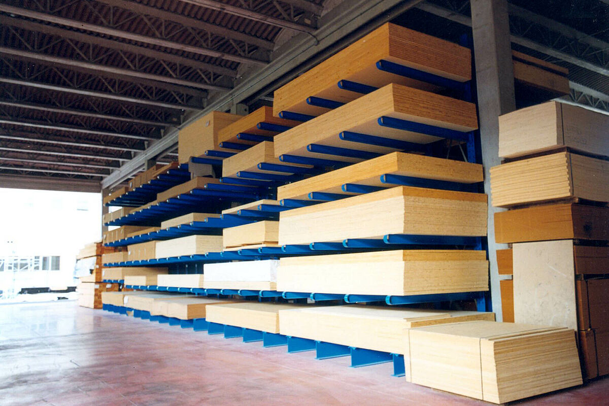 Per questa tipologia di lavoro sono adatti i cantilver molto robusti e compatti. Un'alta resistenza e sistemi regolabili per le richieste più diverse soddisfano il principio di uno stoccaggio economico con accesso diretto e ridotta necessità di spazio Da cantilever manovrabili manualmente fino a completi capannoni utilizzando le strutture delle scaffalature per lo stoccaggio di piani di lavoro da cucina, OHRA fornisce tutti i componenti, su richiesta incl. statica, impianti a ingabbiamento e tutti gli accessori.