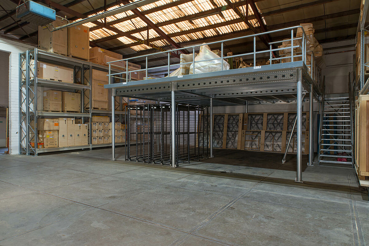 Con l’installazione di un soppalco, si possono immagazzinare merci su diversi piani. Quindi è possibile la sistemazione di attrezzature di scena quali ad esempio mobili, lampade o decorazioni, ma anche di costumi ordinati in modo poco ingombrante e ben organizzato.