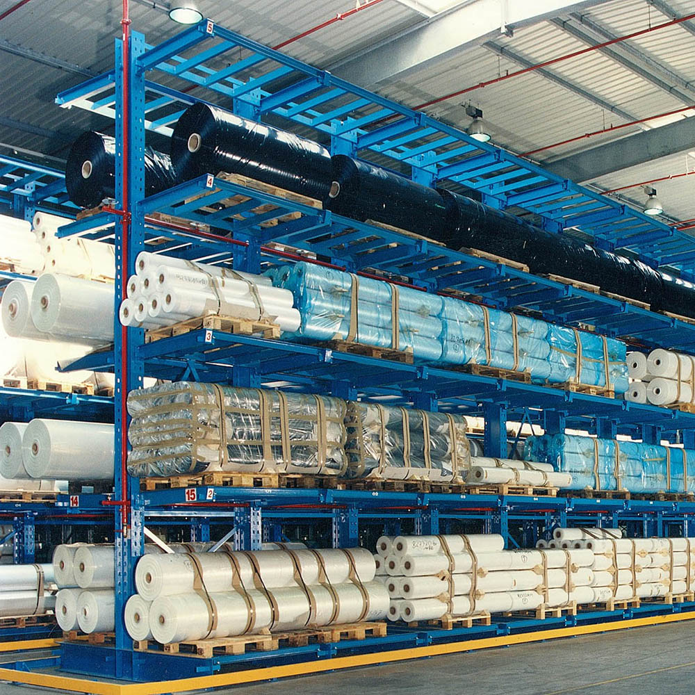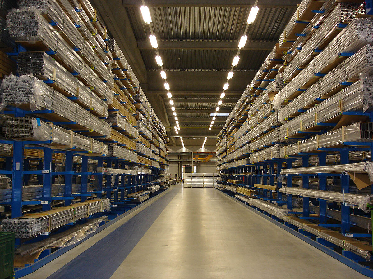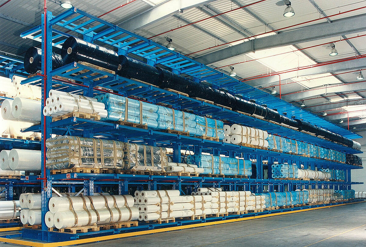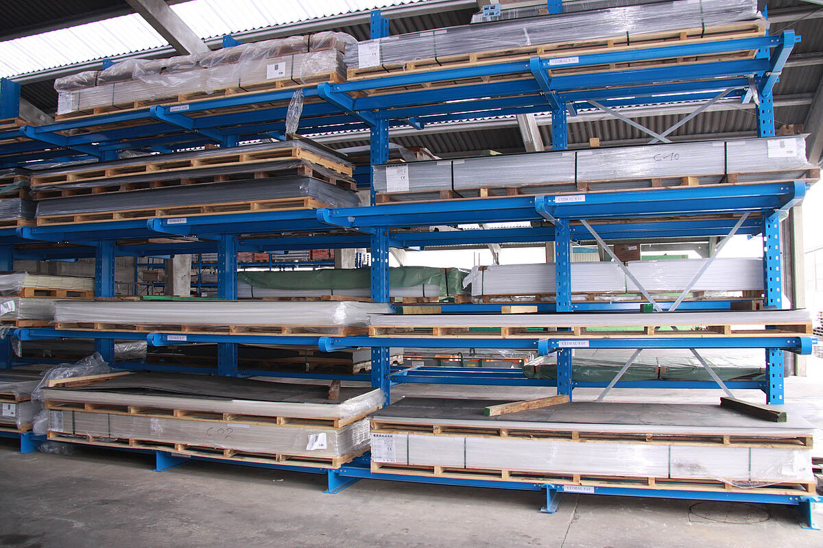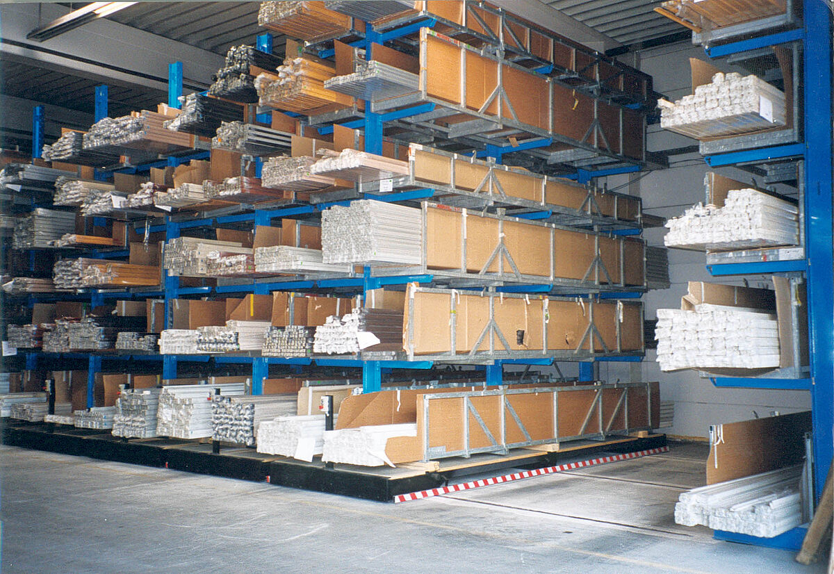 Nello stoccaggio di alluminio e plastica, le scaffalature tipo cantilever risultano essere la soluzione ideale per prodotti con forme e lunghezze differenti. Profili in alluminio e plastica, tubi in PVC e lastre, pluviali, telai di finestre, grondaie e altri oggetti lunghi si possono immagazzinare in modo sicuro utilizzando questo tipo di scaffalatura.
