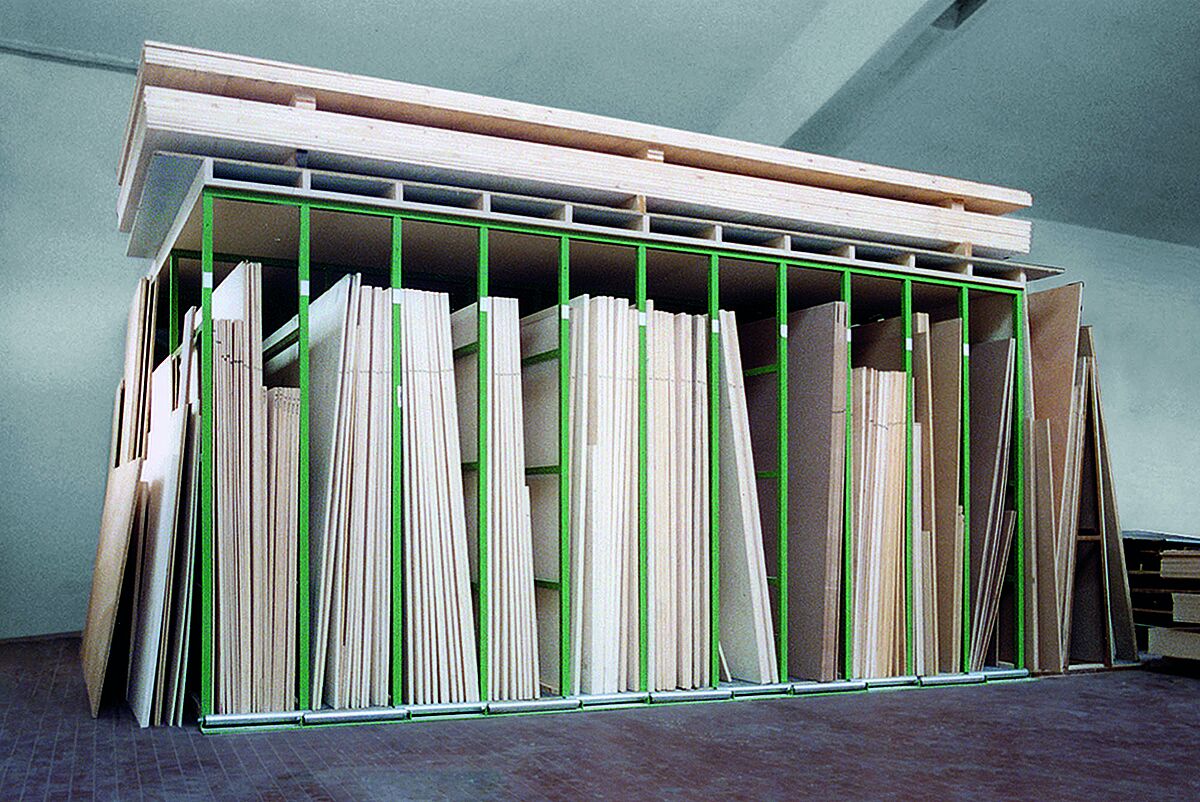 Una specialità di OHRA è il robusto scaffale per pannelli truciolari per lo stoccaggio verticale di pannelli truciolari e materiali in diverse qualità e dimensioni. Il robusto sistema di scaffalatura garantisce un'elevata portata e una rapida manipolazione nell'officina.