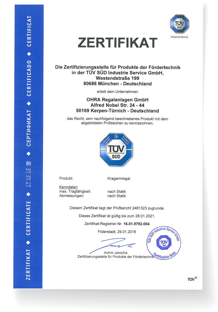 OHRA è stata certificata come la prima impresa del settore a essere conforme ai rigorosi standard di TÜV Süd. Con standard di qualità uniformi in tutto il mondo vogliamo avere la fiducia dei nostri clienti essere anche per il futuro